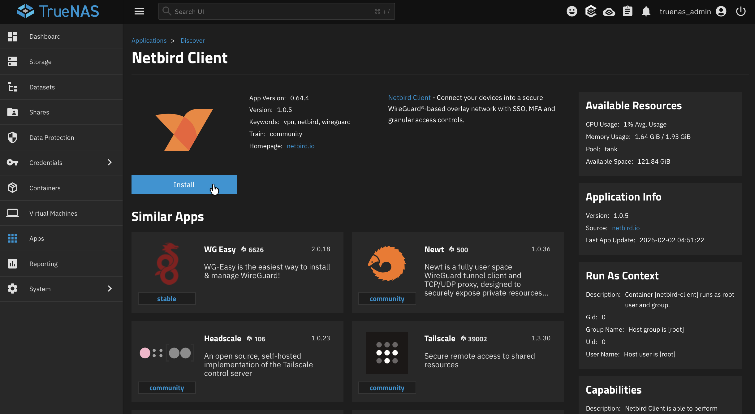 Install NetBird on TrueNAS