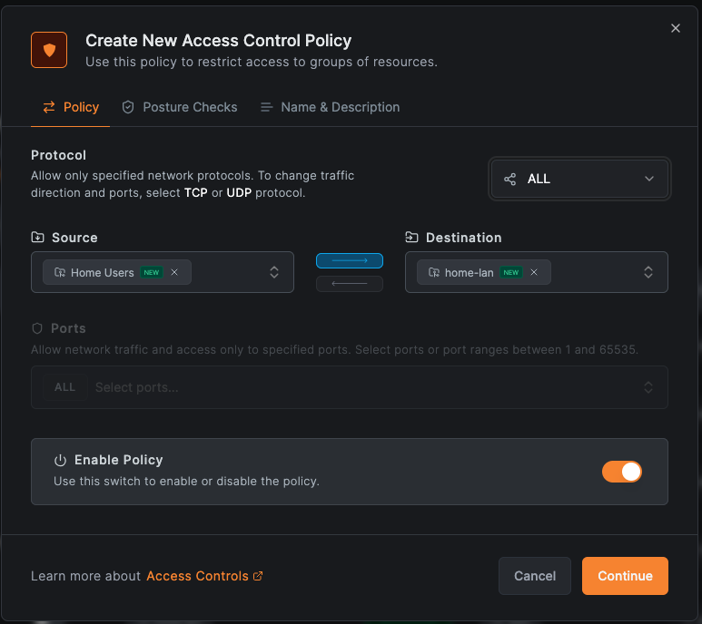 ping 192.168.1.1from the routing peer - Check that your access policy includes your user/device