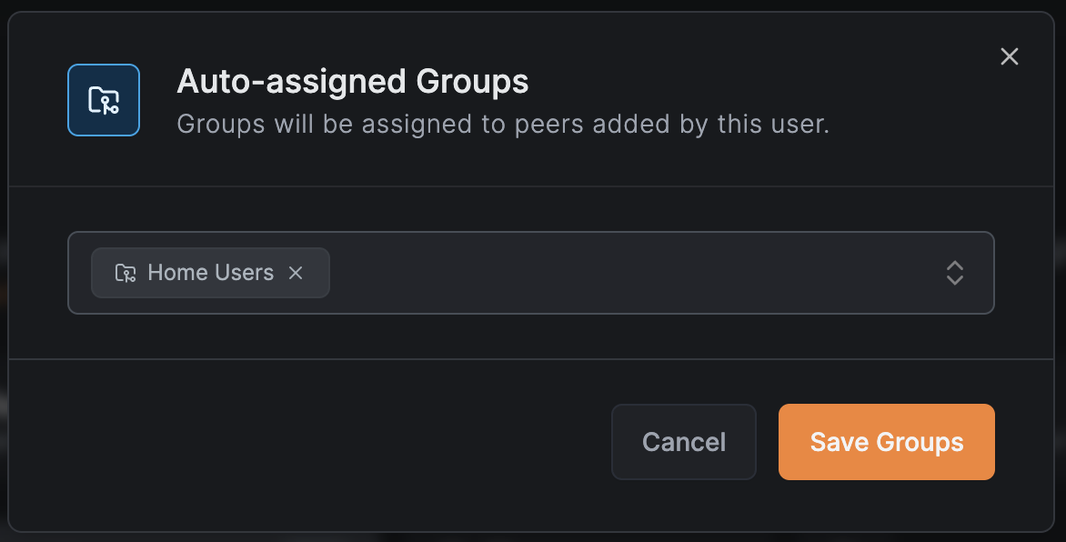 You can also add groups to peers manually after setup. Go to Peers, select the peer, and add groups under Assigned Groups.