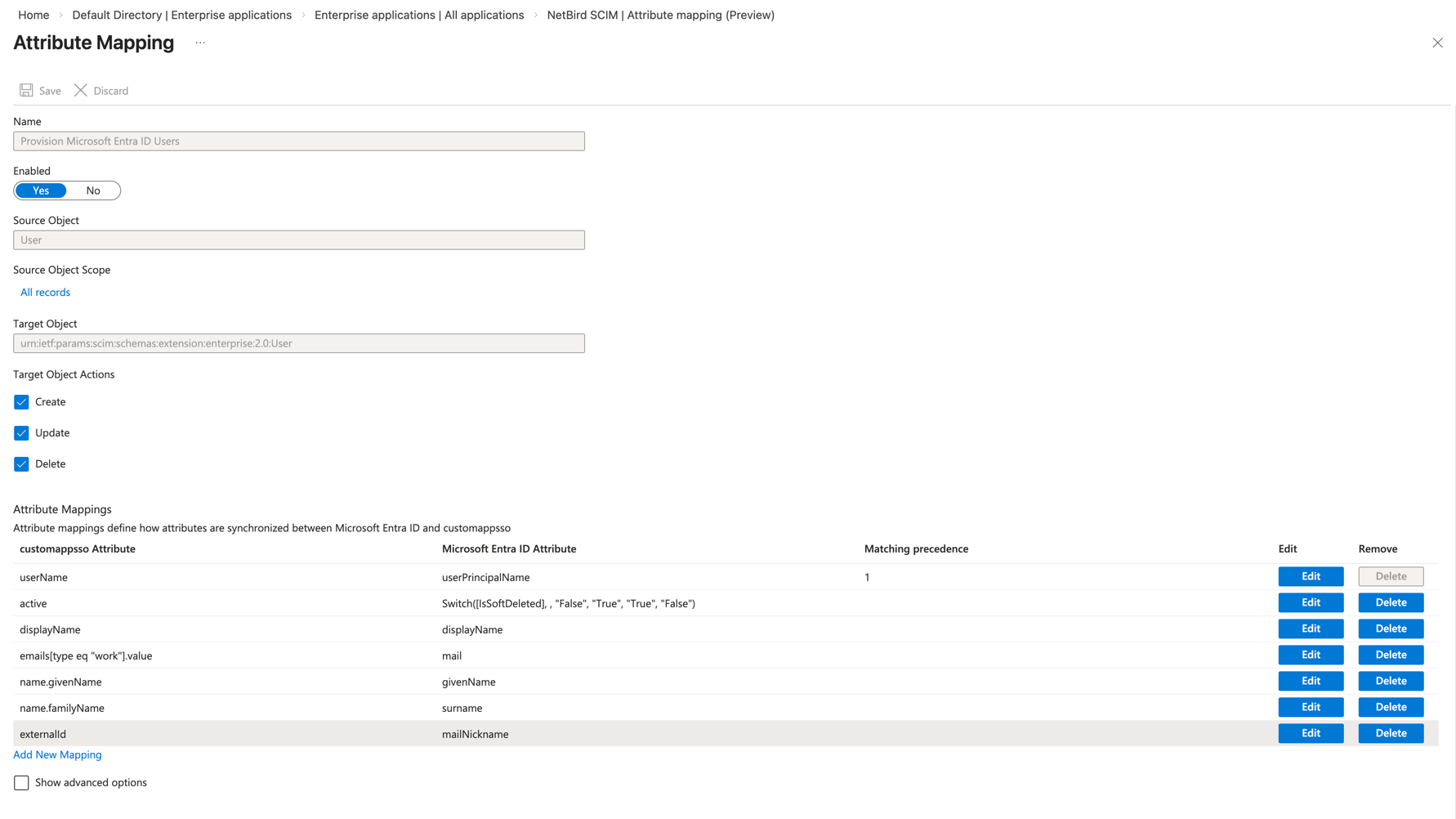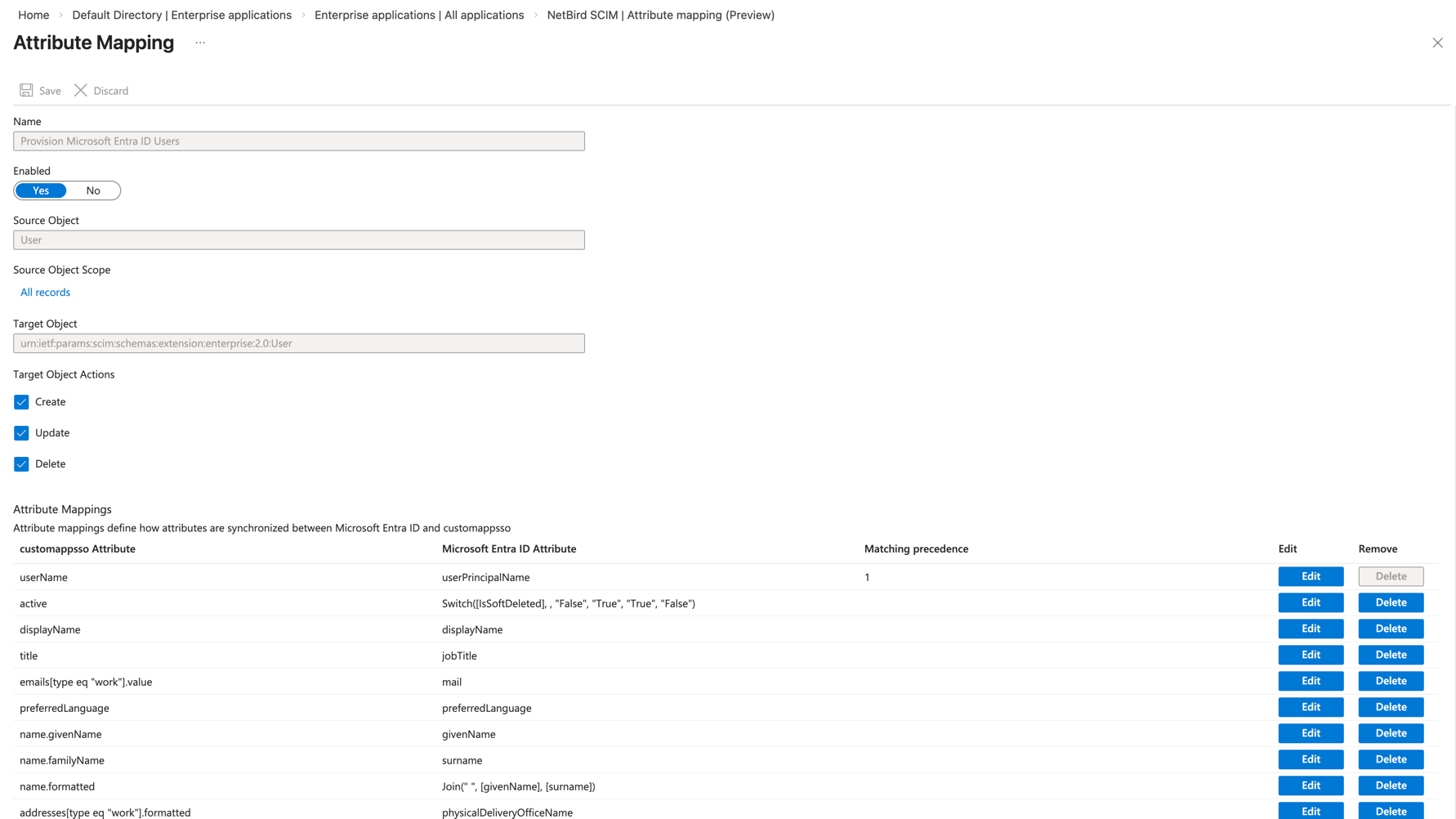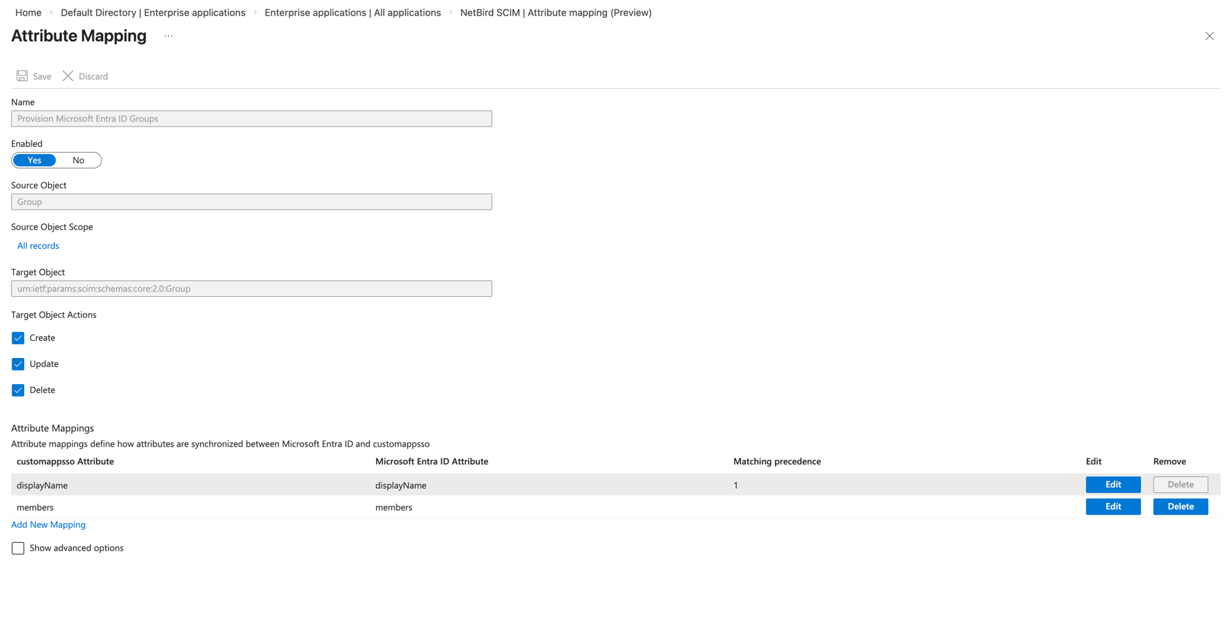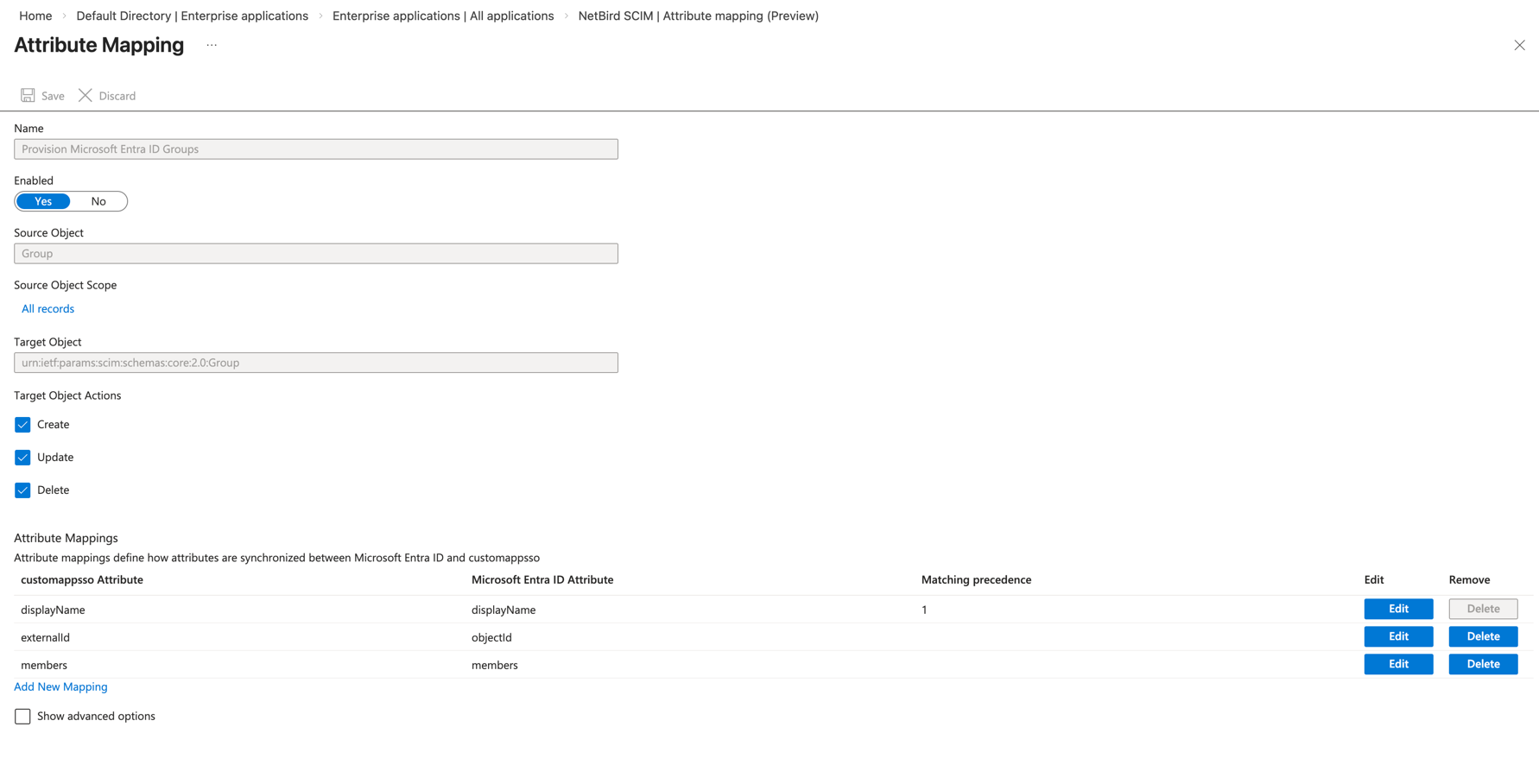 After creating the provisioning configuration, you need to configure the attribute mappings for both groups and users.